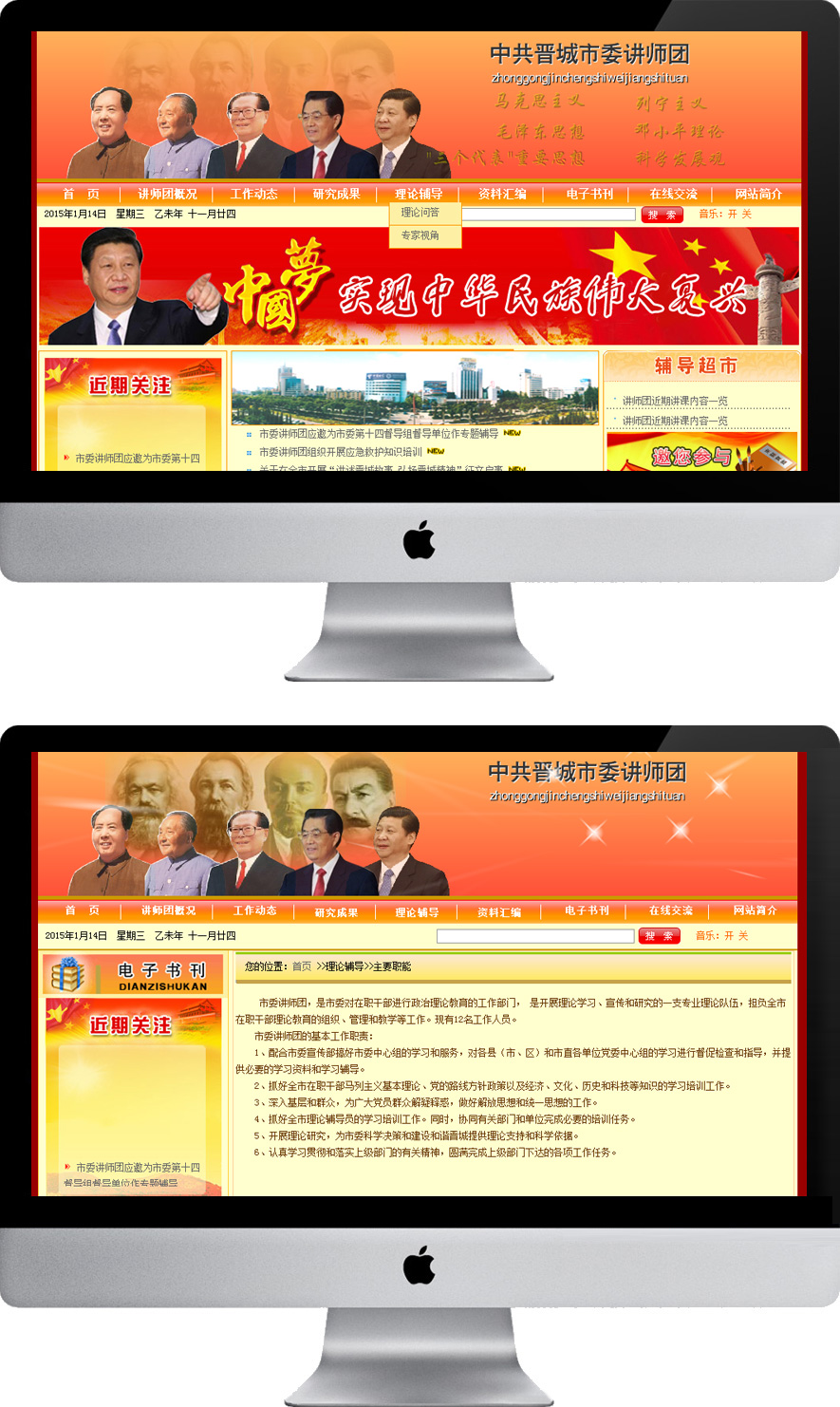 中共晉城市委講師團(tuán)網(wǎng)站是宣傳馬克思主義理論和黨的路線(xiàn)方針政策的理論性網(wǎng)站。網(wǎng)站于2005年11月正式上線(xiàn),2008年分辨率由800*600提升為1024*768,2009年進(jìn)行整體性的擴(kuò)容升級(jí)。經(jīng)過(guò)兩次改版,講師團(tuán)網(wǎng)站可視性進(jìn)一步增強(qiáng),布局更加緊湊合理,功能進(jìn)一步完善,理論服務(wù)更加周到全面。近年來(lái)特別是十七大以來(lái),講師團(tuán)網(wǎng)站在理論學(xué)習(xí)、理論宣傳、理論研究方面做了大量富有成效的工作,為貫徹落實(shí)科學(xué)發(fā)展觀(guān)、構(gòu)建和諧社會(huì)、建設(shè)學(xué)習(xí)型社會(huì)提供了有力的理論支持,受到各級(jí)黨委中心組和理論工作者一致好評(píng)。