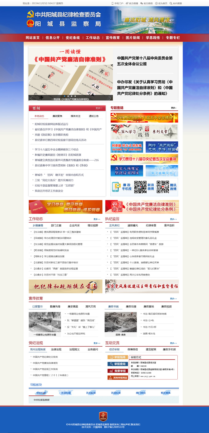 欄,以文字、圖片、視頻等多種形態(tài)呈現(xiàn),力求把網(wǎng)站打造成為陽城縣紀(jì)檢監(jiān)察信息公開、宣傳教育、成果展示、網(wǎng)絡(luò)舉報、問責(zé)曝光的主渠道主陣地。